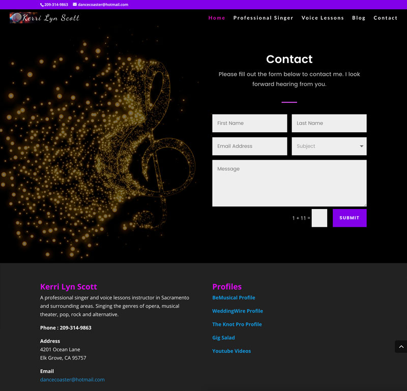 Kerri is a professional singer and voice teacher based in Elk Grove, CA. She is originally from DePere. Wisconsin and she have been here in Northern California since 2019. She is happily married for ten years and has a beautiful son.
