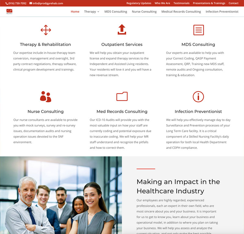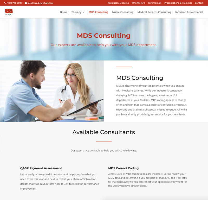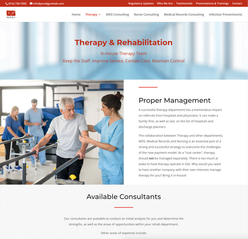 Prodigy Rehabilitation GroupProvides management and consultation services in Therapy, Outpatient, Nursing, MDS, Infection Control, and Medical Records.