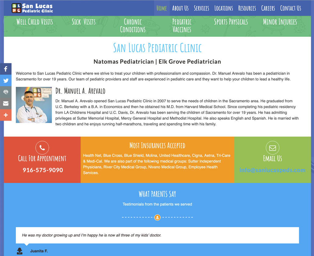 San Lucas provides pediatric medical care to newborns, toddlers, school-age children, and adolescents. Their services include well-child examinations, sick visits, management and referral coordination of chronic pediatric conditions, pediatric immunizations, sports physicals, and management of minor injuries.