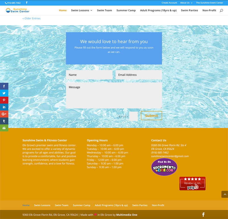 Elk Grove’s premier swim and fitness center. They are excited to offer a variety of dynamic programs for all ages and abilities. Their goal is to provide a comfortable, fun, and positive learning environment, where students gain strength, confidence, and a love for fitness.